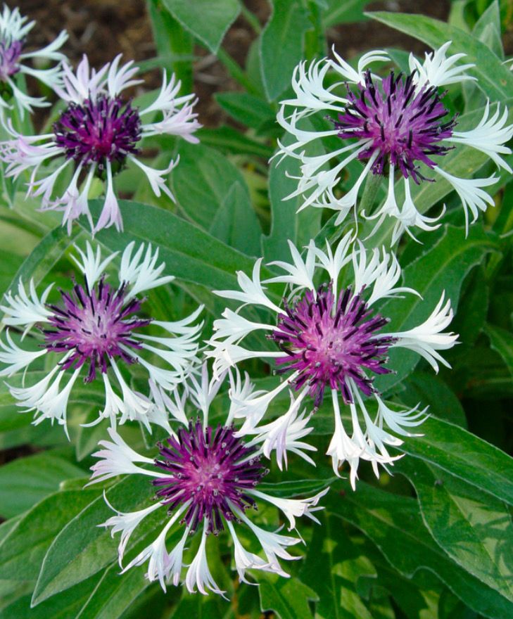 Kornblóma "Amethyst in snow" sum trívist sera væl í Føroyum. (Eitur Bjergknopurt á donskum)